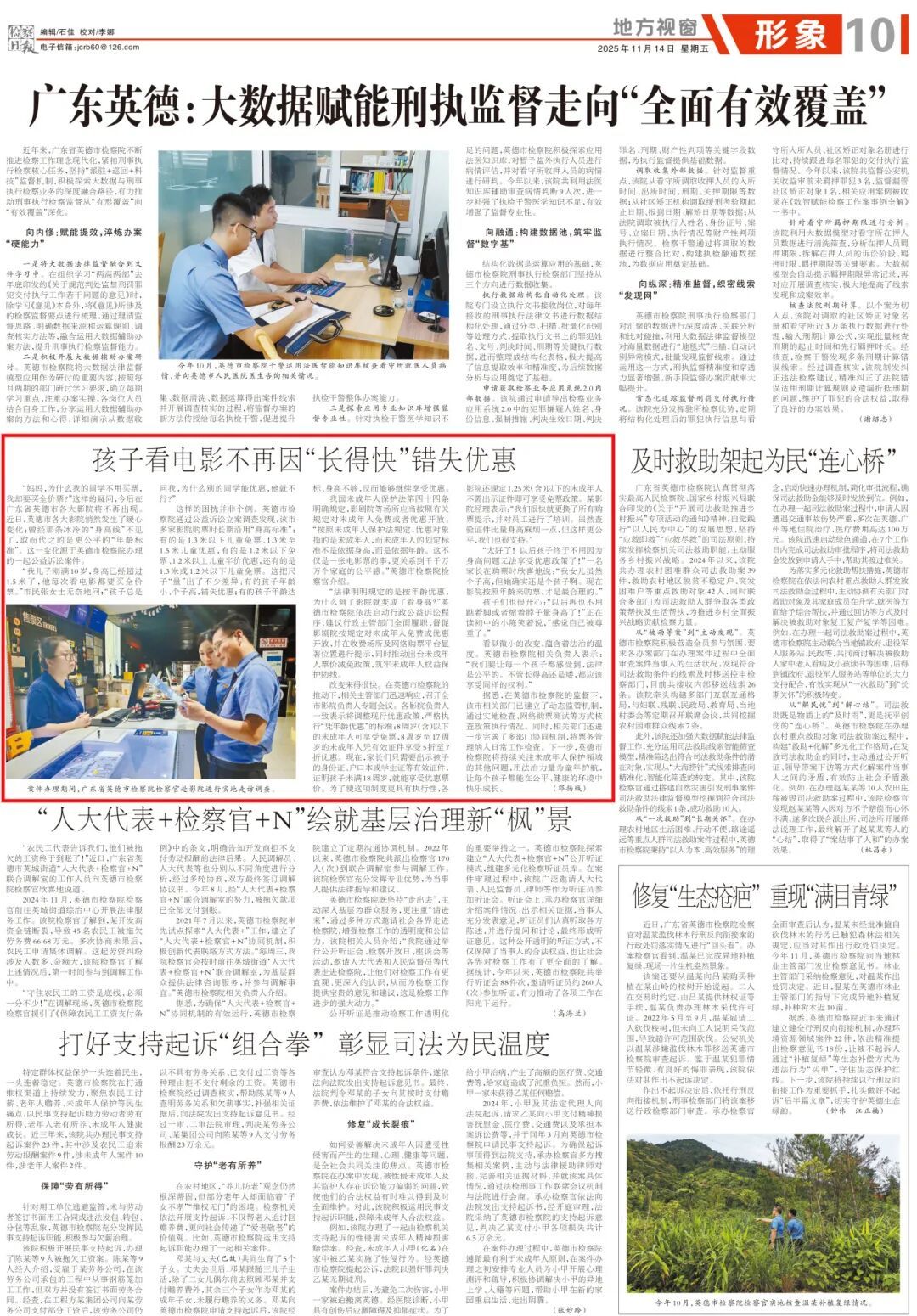 “法律明明规定的是按年龄优惠,为什么到了影院就变成了看身高?”英德市检察院依法启动行政公益诉讼程序,建议行政主管部门全面履职,督促影剧院按规定对未成年人免费或优惠开放,并在收费场所及网络购票平台显著位置进行提示,同时推动出台未成年人票价减免政策,筑牢未成年人权益保护防线。